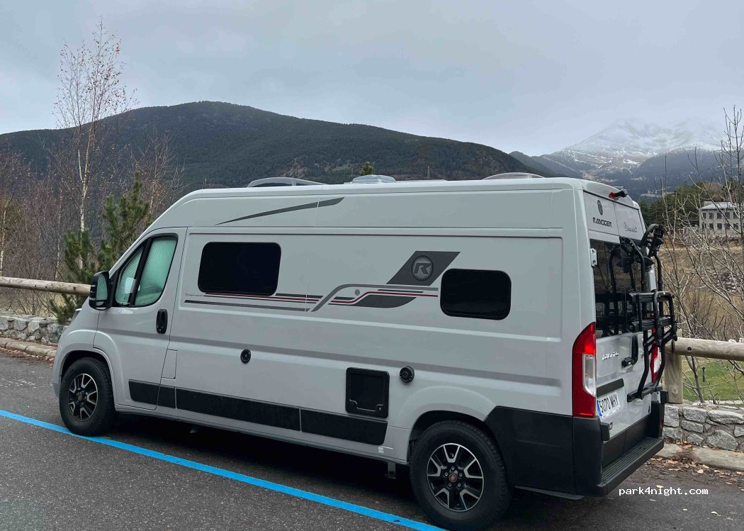 Blue zone parking spot, with stunning views and well located for hiking. We have spent a few nights with the camper and without problems. Quiet place, silence and very clean!! Ideal for the camper.