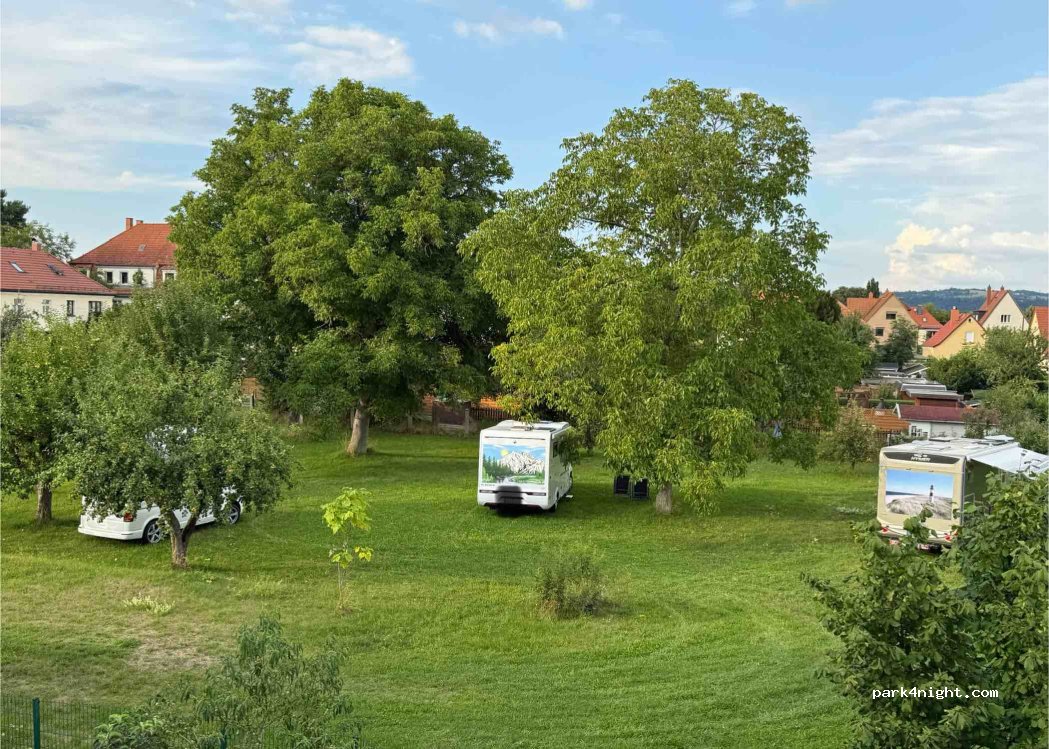 Privater Stellplatz auf einer Obstwiese am Stadtrand von Dresden. Zufahrt zur Wiese über Poetenweg 19. Stellplatz für Kastenwagen und kleinere Wohnmobile bis 7 m! als idealer Ausgangspunkt für Ausflüge in die Sächsische Schweiz, Dresden, Elbradweg und das gesamte Dresdner Umland. ÖPNV ist der Bus in ca 100 m, S-und Straßenbahn ca 10 min zu Fuß erreichbar. Bitte vor Anreise Kontakt aufnehmen, das Tor ist sonst verschlossen. Für die Wiese sind ein paar Unterlagen/Keile sinnvoll. Wasser, Entsorgung ist nach Absprache für unsere Gäste möglich, aber nicht direkt am Platz. Entsorgungspauschale 5 Euro. Strom vorhanden, jedoch nicht für elektr. Heizung/Klima. Einkaufsmöglichkeit/Bäcker ist ca 500 entfernt.