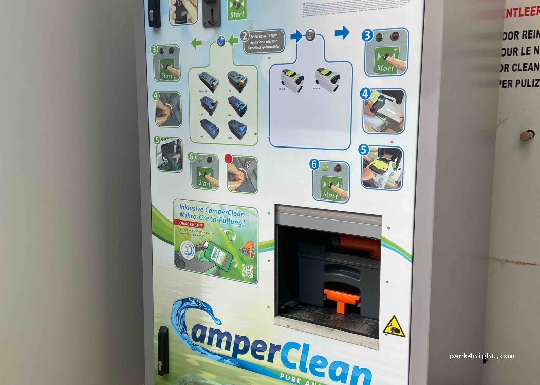 Un grand merci pour l'information car nous avons pu vidanger nos toilettes chimiques à la machine automatique du camping. Astuce : stationnement sur le parking de la piscine puis prenez la caissette à la main pour vous rendre à gauche après la réception. Machine automatique très pratique pour 2 €. Imbattable dans tout le Tyrol ! Et merci aux propriétaires du camping pour cette idée !