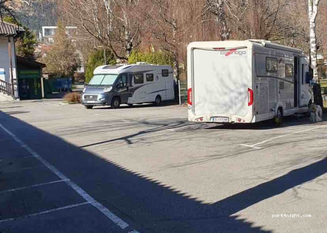 Petite aire de 6 ou 7 places attenante au camping. Simple mais efficace ! La seule aire d’Innsbruck ! 10€ pour 24h (horodateur) avec l’eau et le 220v.