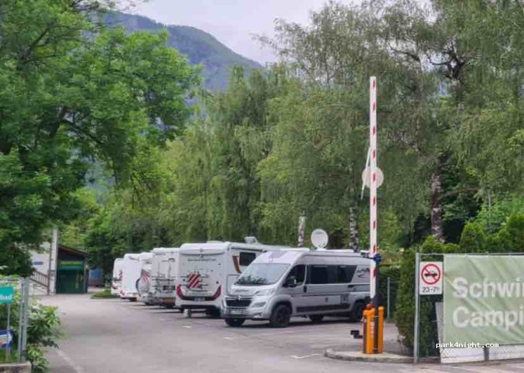 parcheggio di fronte alla piscina comunale. ottima per una rapida sosta e per raggiungere il centro storico di hall in tirol. se ci si ferma per la notte, bisogna andare via molto presto la mattina (non oltre le 7)