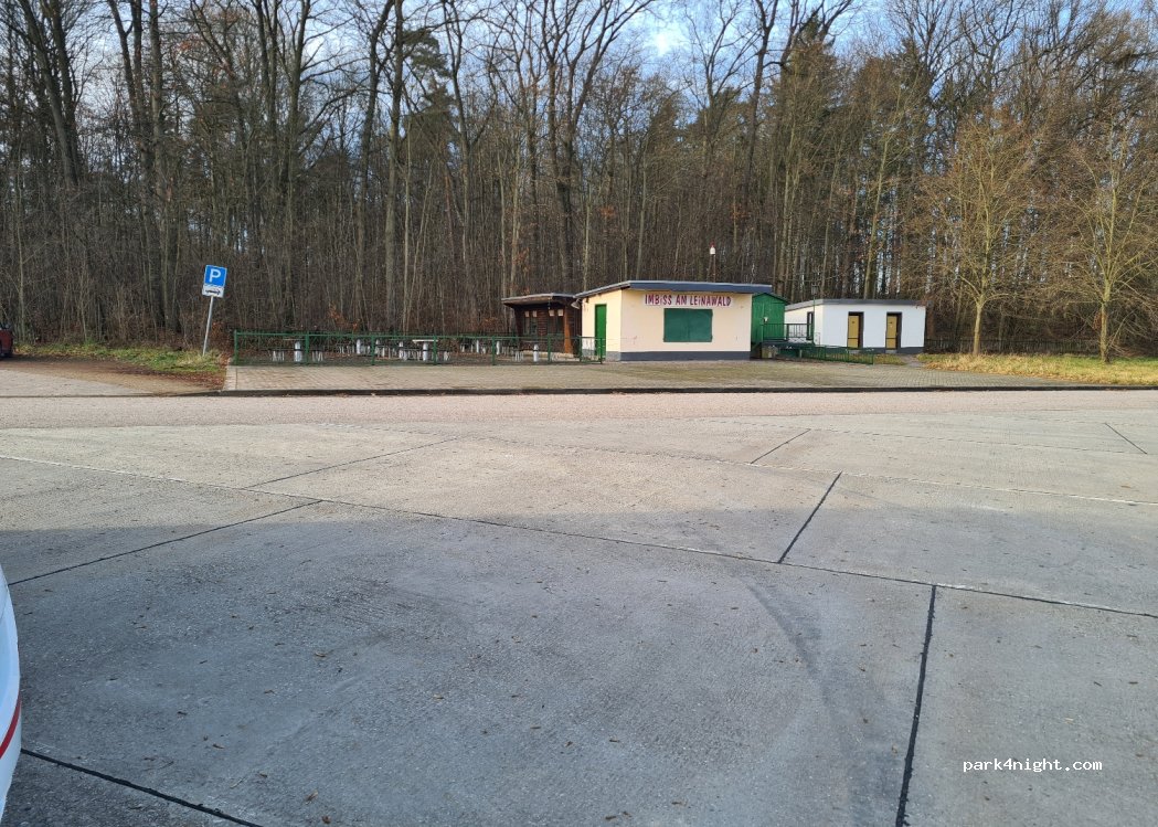 Large parking lot, which is empty there at the end of December, probably busier in the warm months, there is a snack bar with a toilet, probably when the snack bar is open the toilets are open, otherwise the dam is there
