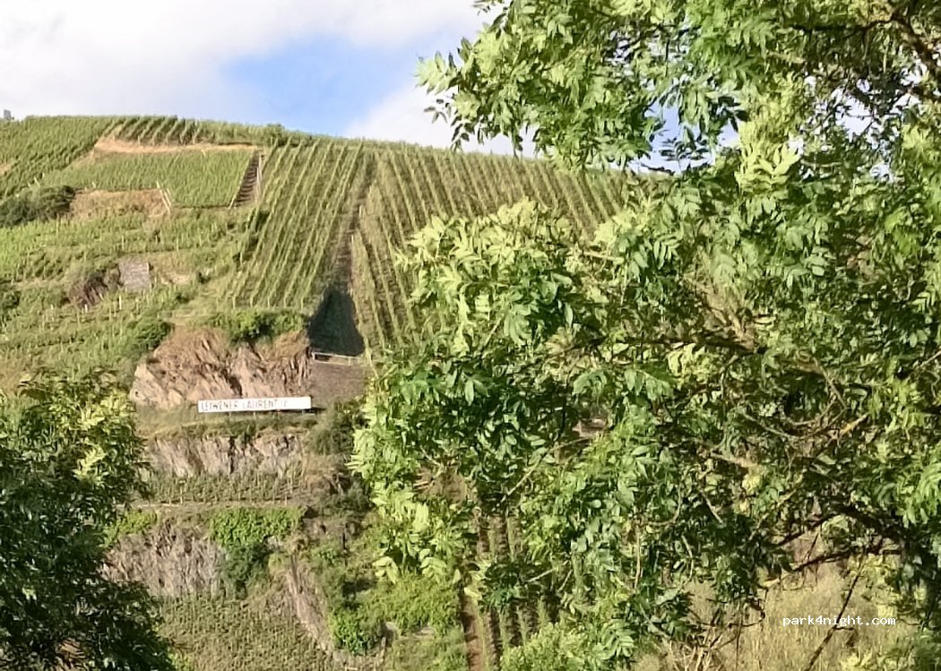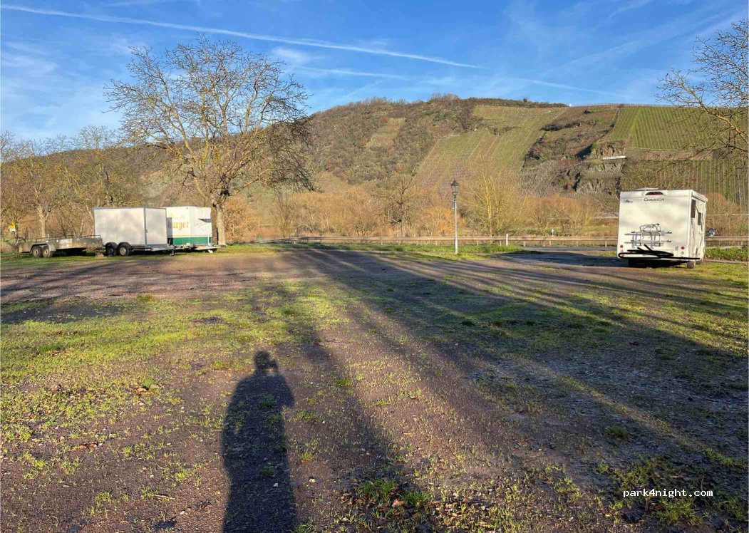Ein ruhiger, kostenloser Parkplatz direkt an der Mosel umgeben von Weinreben. Wir haben eine sehr ruhige Nacht verbracht und standen eben. Auch für große Wohnmobile geeignet. Keine Mülleimer, Ver- und Entsorgung möglich.