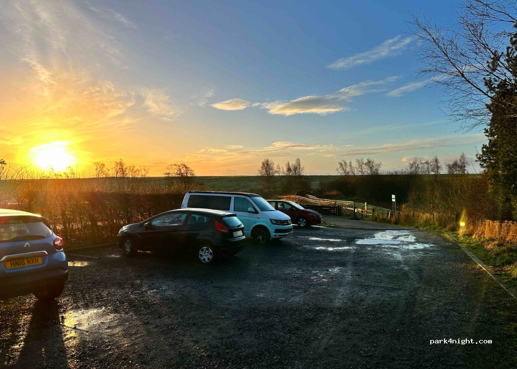 Stayed a Sunday night after a festival in Jedburgh. We arrived here around 11pm and no one else was there. Parked pretty much at the far end using a log parking divider to level the car. Quiet, safe night, beautiful clear, starry skies, slept well. Car park almost full in the morning with walkers and dog walkers. Tight turn in to car park depending on direction you’re arriving from. No toilets.
