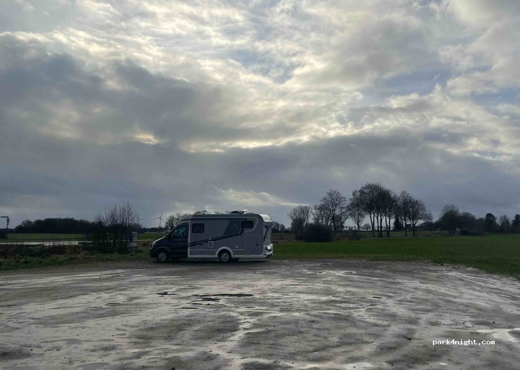 Parking du Mühlrather Mühle. Les nuitées ne sont pas explicitement interdites. Mais il y a suffisamment d'espace et vous ne dérangerez personne. Le parking est juste dans la rue et donc bruyant. Il y a un chemin dans les bois et les champs où vous pouvez marcher ou faire du vélo sur quelques kilomètres. Aucune option VE. Pas de frais de stationnement.
