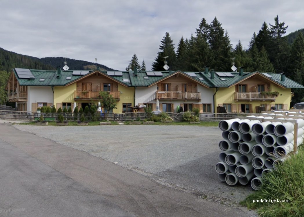 Claro de grava donde se puede aparcar gratis para visitar Madonna di Campiglio o hacer una excursión a las cascadas de Vallesinella. Los propietarios de las casas permiten aparcar delante del claro. Importante: no aparcar delante de las entradas de las casas ni en medio del aparcamiento porque es utilizado por los autobuses para dar la vuelta.