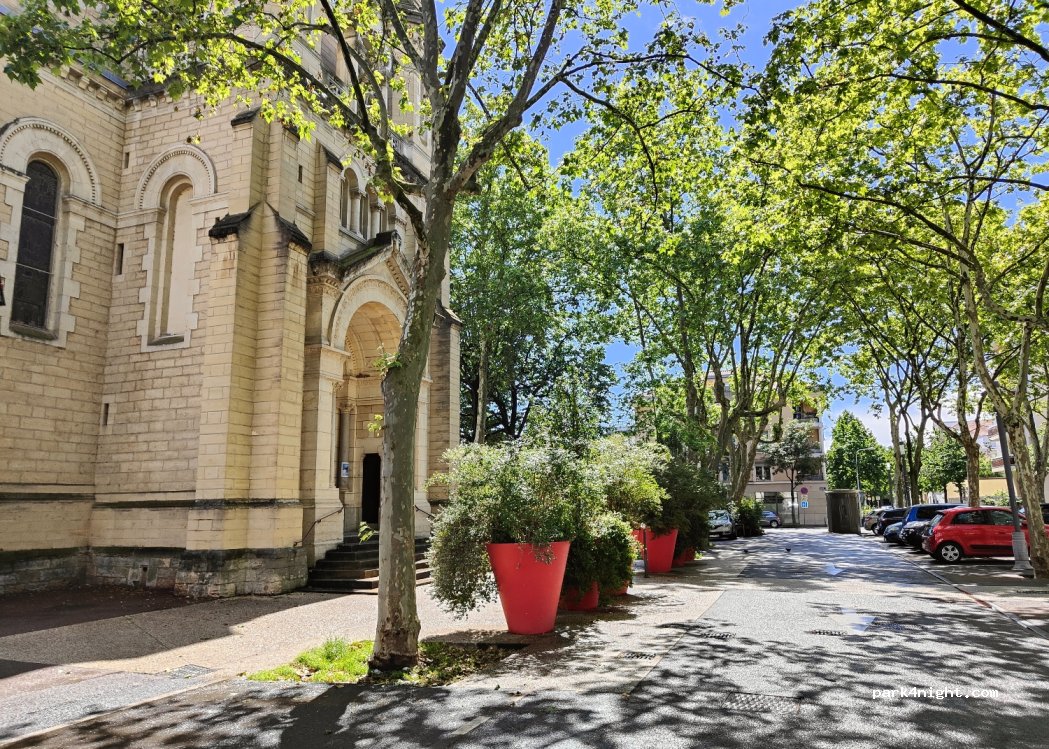 siamo rimasti qui una notte, il giorno è difficile trovare posto per parcheggiare ma la sera si liberano tanti posti. fino all'una di notte tanto casino con ragazzi sulle scale della chiesa stavamo per andare via.metro a 1 km scendere a bellecor. nn c'è bisogno di abbonamento bastano 2 bigl a/r zona 1. se si sbaglia a fare il bigl. si può chiedere il rimborso uff. inf. dopo un'ora