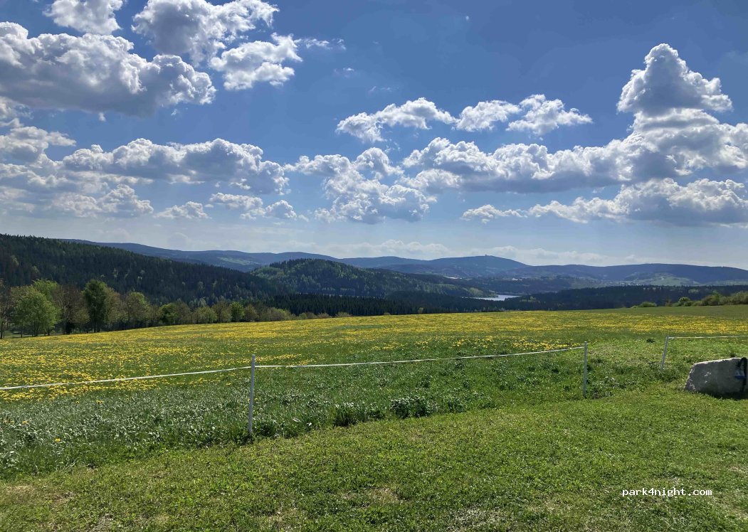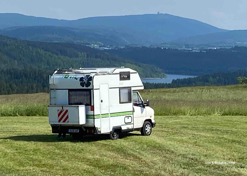 The parking space is on a plato with a magnificent view of the Eibenstock dam, in the background is the Erzgebirge ridge with the Auersberg. From the parking space you can start wonderful cycling or hiking tours into the western Ore Mountains. In the immediate vicinity there is a Kneipp facility which is fed with fresh spring water. Right around the corner is the “Zum goldenen Hirsch” inn with very good home cooking. The Glöckner village bakery is located about 180 meters from the parking space and prepares delicious rolls and pastries from Tuesday to Saturday.