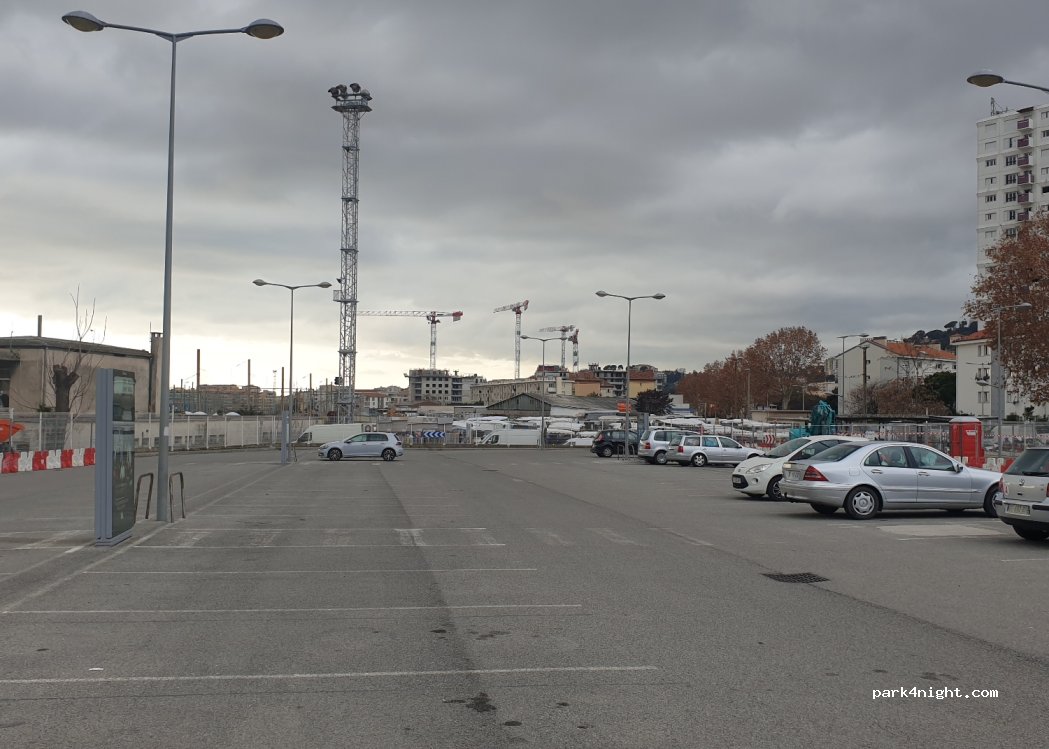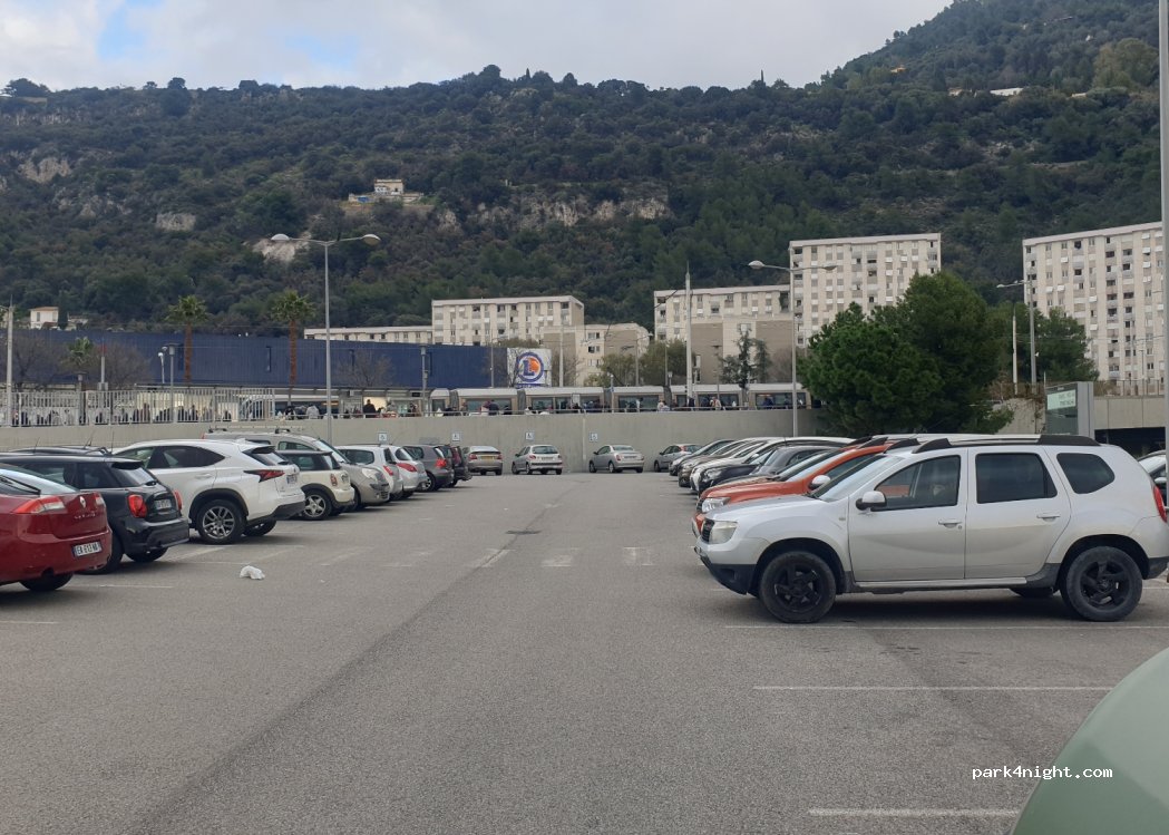 Park & Ride Nizza, in 20 Minuten ist man in der Innenstadt. Höhenbegrenzung auf 2,1 m, war aber geöffnet.