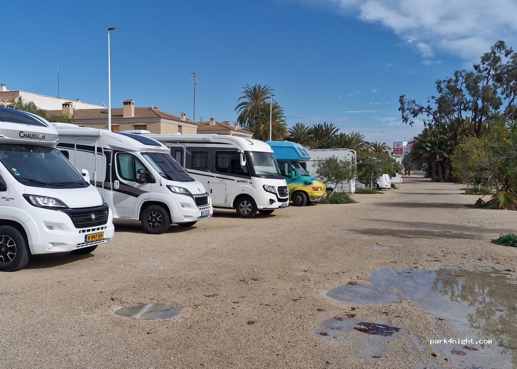Parkeren en overnachten vlak bij Santa Pola op 30m van een doorgaande weg