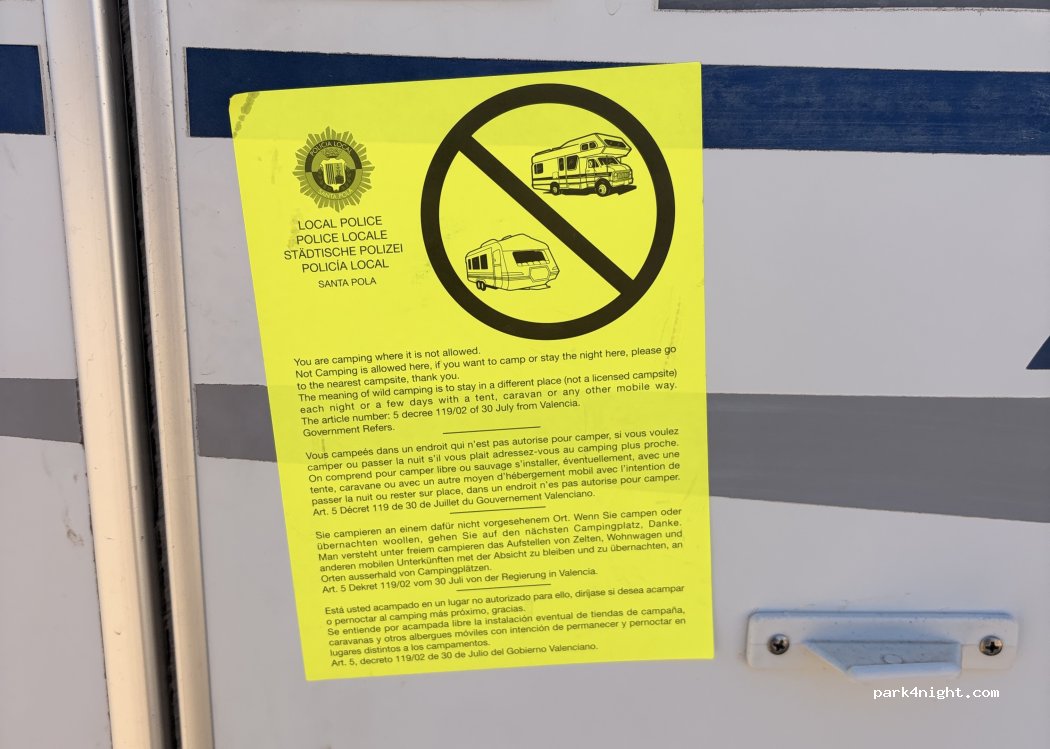 Park near Santa Pola, 30 meters from a main road