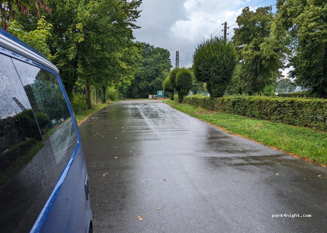 Ruhiger Parkplatz an einem kleinen Friedhof. Normalerweise ist nicht viel los.