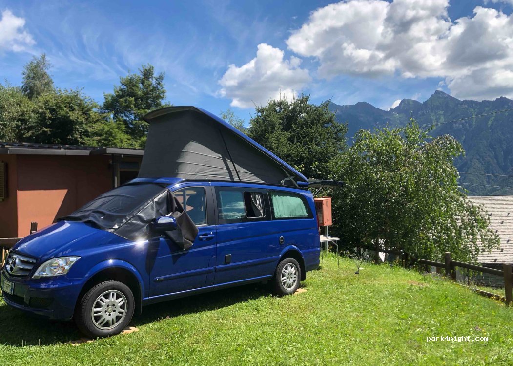 Camping Cistella, in cima alla montagna dopo Cravegna. Molte piazzole stagionali, con roulotte e cabine, ma è disponibile una bella area camper con vista sulle montagne. Gestori molto cordiali, bagni pulitissimi, doccia a pagamento. Prezzi eccellenti