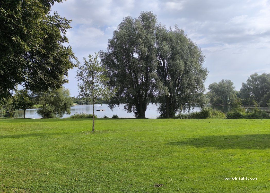 Gut angebunden an die Autobahn, weswegen man diese auch leicht Nachts hört. Ansonsten eigentlich ein relativ ungestörter Platz zum übernachten. Im Grunde nicht viel mehr als Wiesen zwischen Baumreihen, aber daneben befindet sich ein schöner Badesee mit Park. An diesem befindet sich auch ein Kiosk mit Toiletten und Dusch Möglichkeiten. Denke aber die sind Nachts zu, am Morgen jedoch offen.