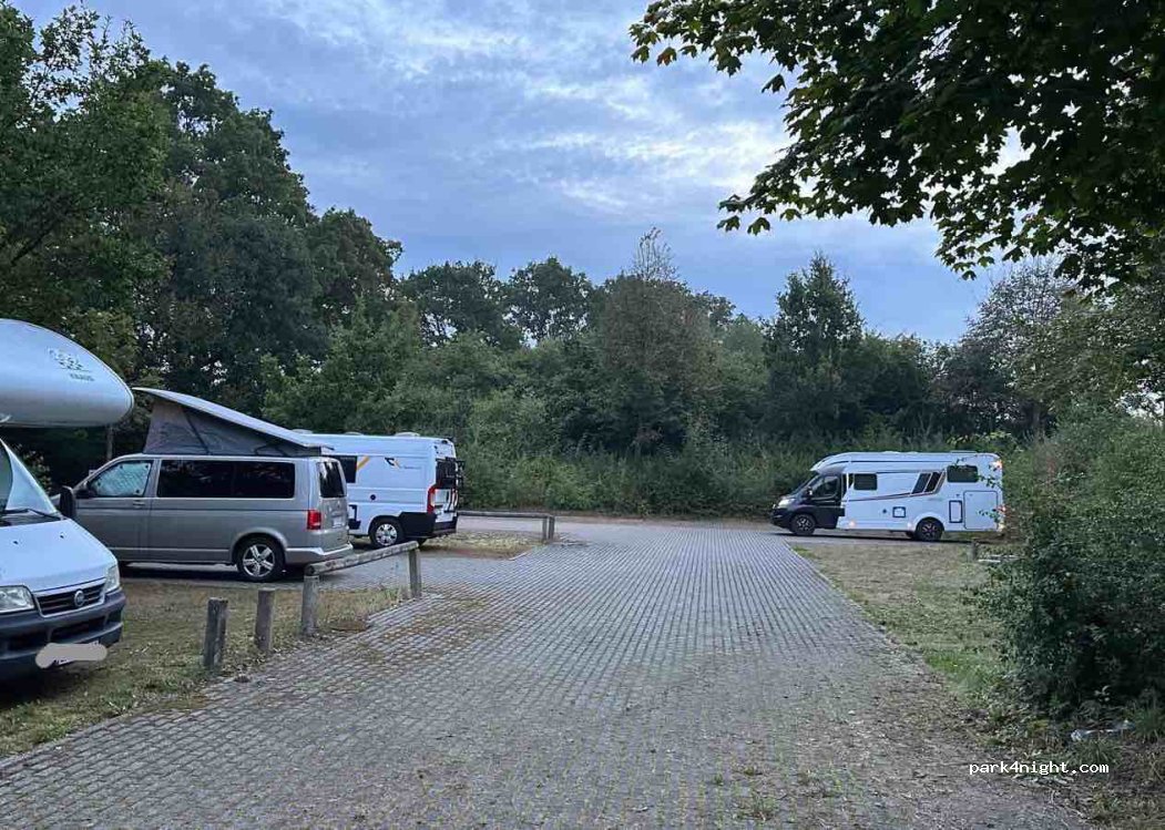 Einfacher Parkplatz. Einfahrt schwer zu finden. An der Hauptstraße einfach geradeaus in den Wald fahren und dann rechts auf den Parkplatz fahren. Die Straße hört man aber nachts ist es sehr leise. Spielplatz gegenüber.