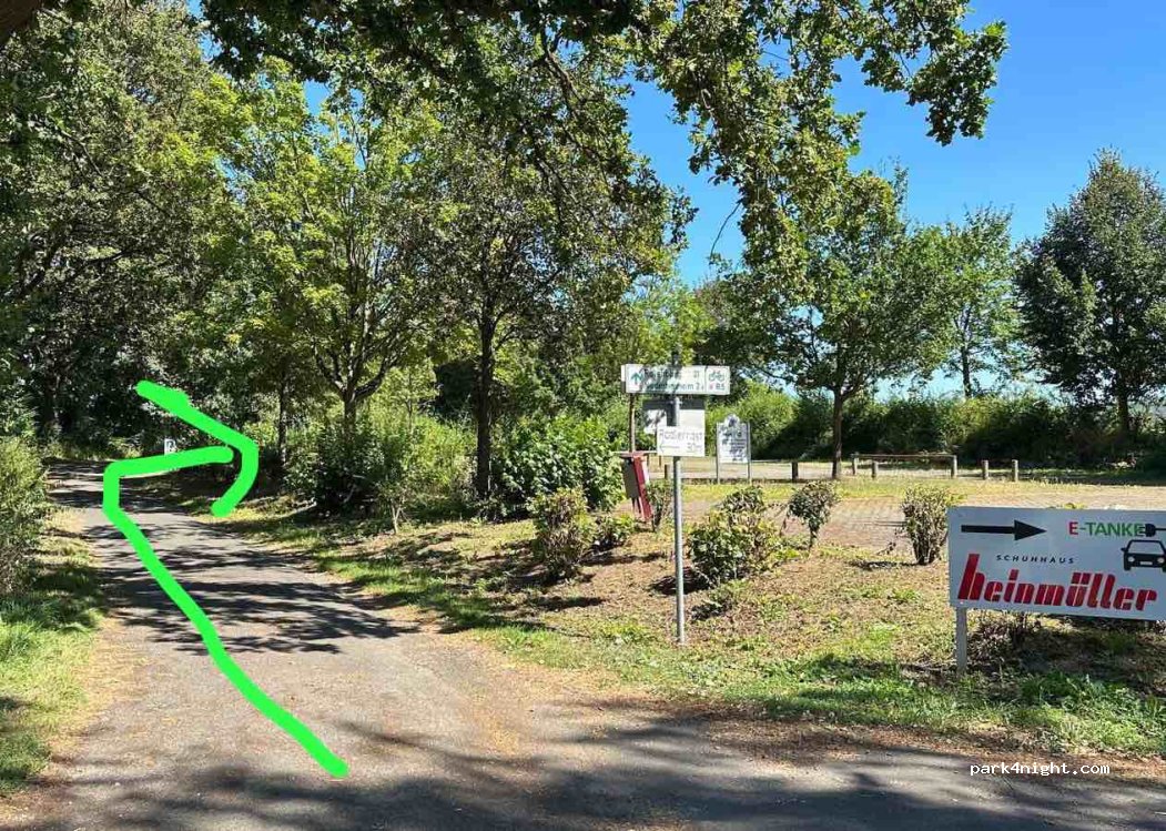 Wir kamen kurz vor Mitternacht und bedanken uns bei Schuhhaus Heinmüller für diese großzügige Möglichkeit. Der Parkplatz ist links ab ( bzw. rechts ab wenn man von der anderen Seite kommt ) , wenn man den großen Parkplatz sieht. Unter Bäumen. Schön ruhig Das Schuhhaus öffnet erst um 10 Uhr sonst hätten wir noch geschaut.