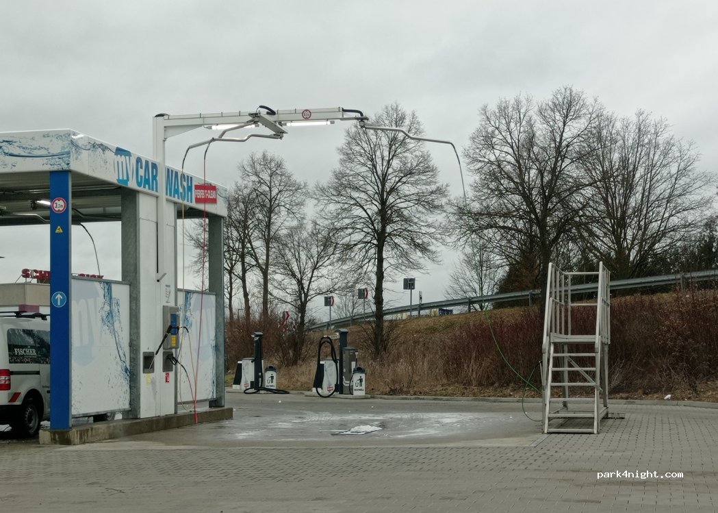 Perfect stop on the highway. CarWash without height limit with a small bridge to climb up. Delicious snack right next to it. The guest room is an old tram carriage. Here you can eat with a view of the Fourteen Saints, Banz Monastery and the Staffelberg. Parking lane directly in front of the snack bar and CarWash.