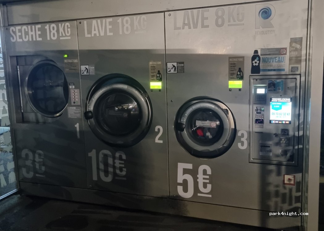 5€/8kg 10€/18kg/washing 3€/18€/drying