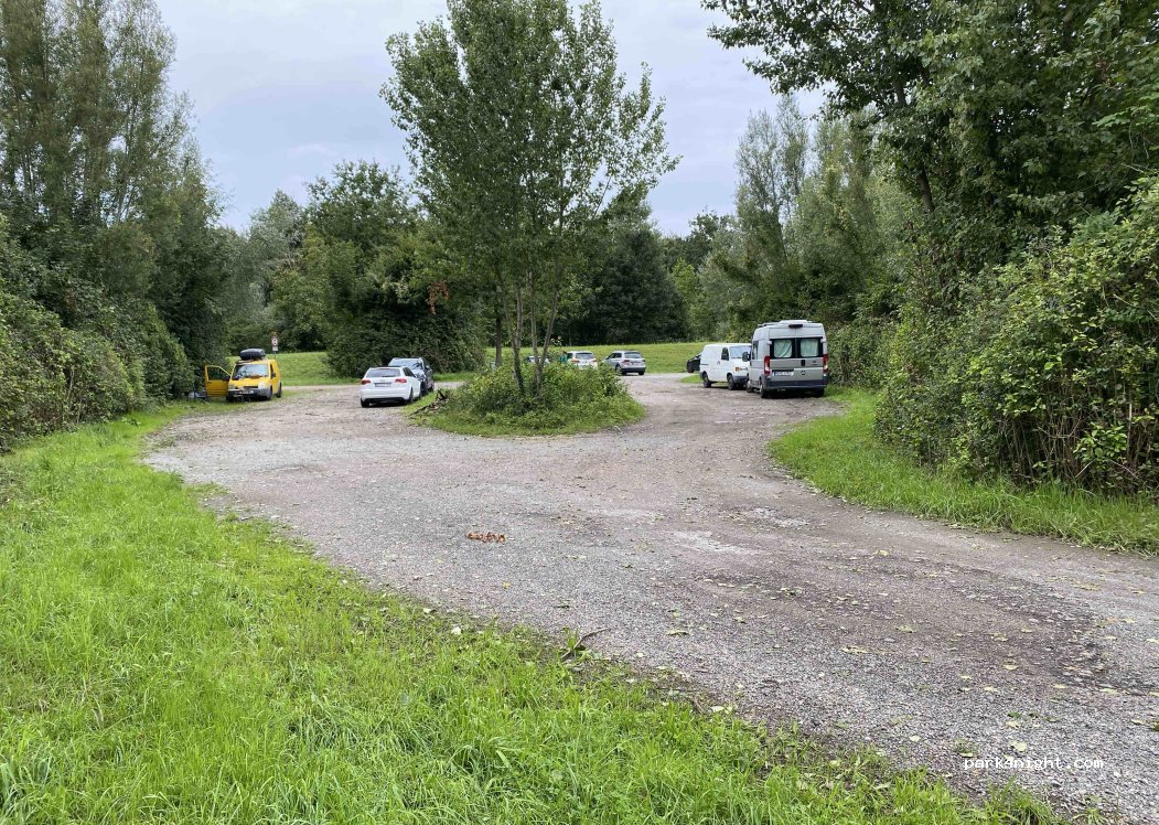 We stayed two nights. Quiet parking area mainly used by the local dog walkers. If you park close to the trees, might get unwanted visitors (mosquitoes). We felt safe during the night. Recommended place.