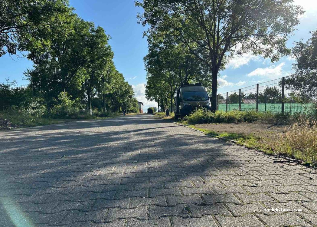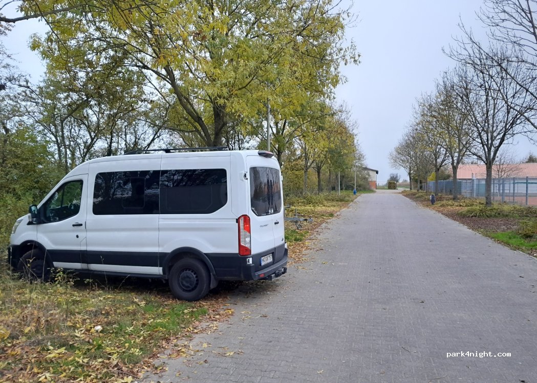 Kostenloser Platz für eine Übernachtung. Ruhig gelegen in den Abend-/Nachtstunden. Außerhalb der Ferienzeit ist ab morgens Betrieb im nahegelegenen Schulzentrum zu erwarten. Mülleimer vorhanden, kein Strom- oder Wasseranschluss.