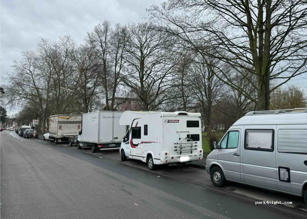 Free parking for at least 5 motorhomes. I stood there for 2 days and nights during the carnival weekend and it was surprisingly quiet at night. With a Nextbike you can get to the cathedral in about 23 minutes or you can take public transport.