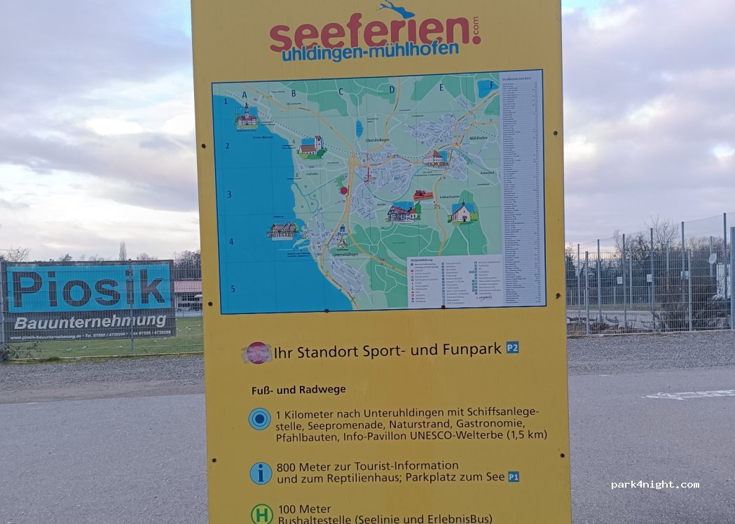C’est le seul parking accessible aux camping-cars pour visiter Uhldingen-Mühlhofen et le musée Pfahlbauten. La distance de marche est un peu longue (20-25 minutes). Les automates pour payer le parking sont défectueux. Le parking est sale, gravillonneux, à proximité immédiate de la route et cher. Mais il n’y a pas d’autre alternative… ne restez pas dormir là.