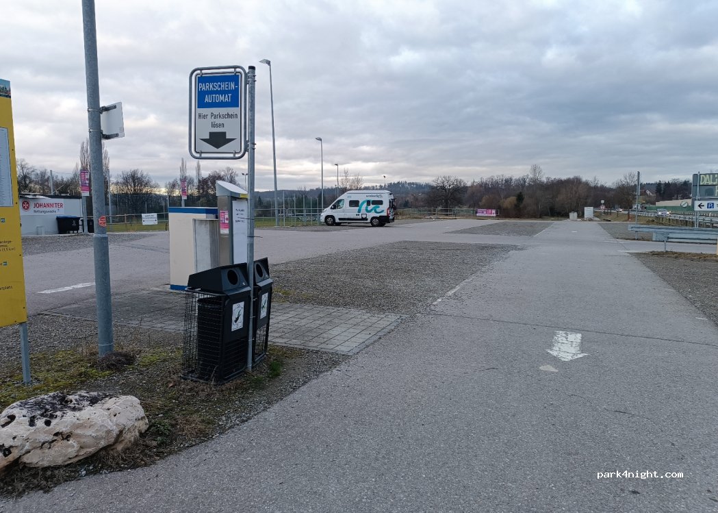 Null Sterne. Direkt neben viel befahrener Straße. Parken als Womo nur mit Tagesticket für 12 €, übernachten noch teurer. PKWs können dagegen stundenweise bezahlen. Automat gibt auf 20 €-Schein kein Wechselgeld - eine Frechheit. Warum darf man mit dem Womo nicht auf P1 parken - die Plätze sind dort groß genug? Die Gemeinde übersieht wohl, dass Wohnmobilisten eine große Zielgruppe sind.