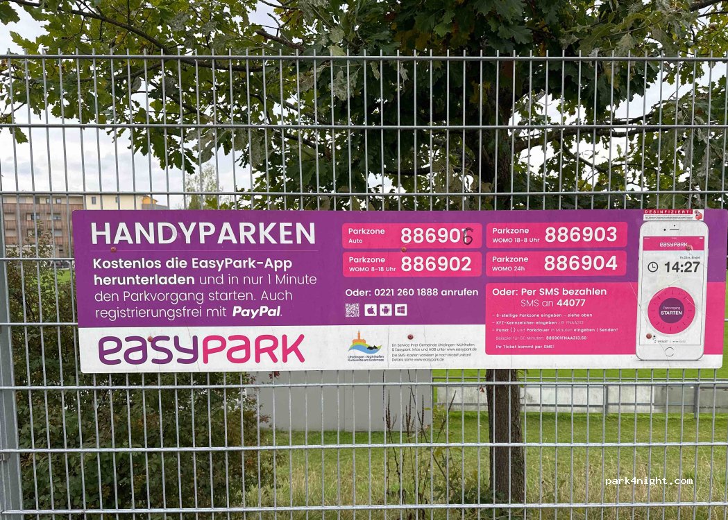 Inzwischen kann auch für Wohnmobile Stundenweise ein Tickez gezogen werden zum parken. 2€/h (Stand 10/2024)