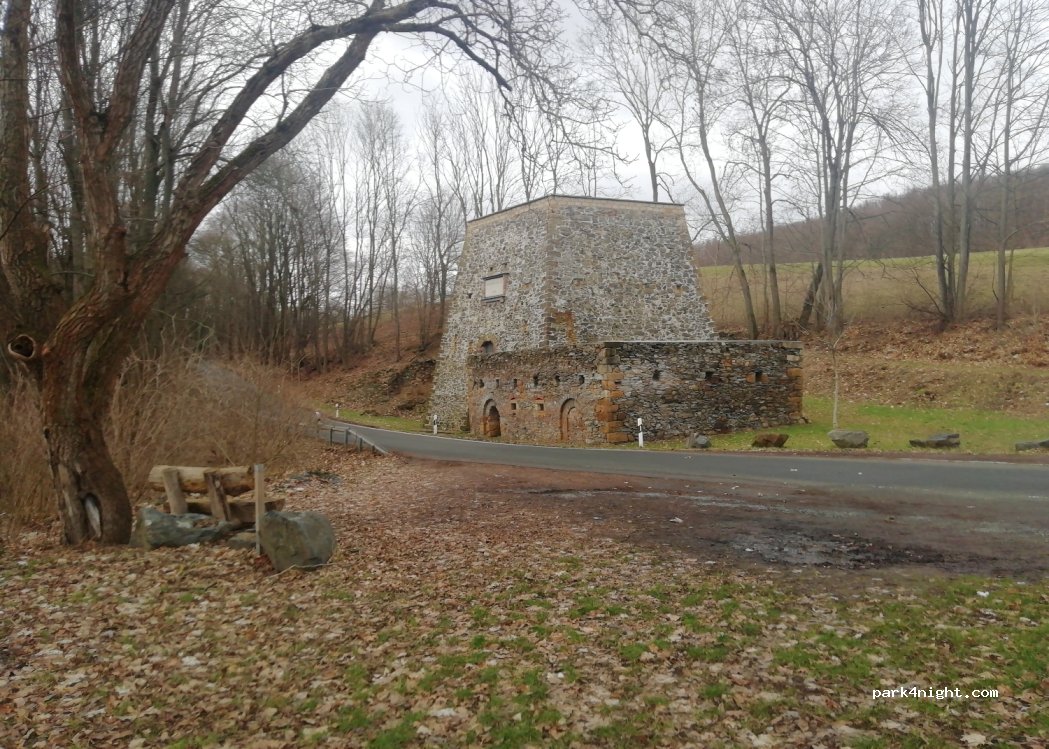 Small parking space at the industrial monument. Little traffic street. Stay undisturbed at night. Baker and inn in Maxen.