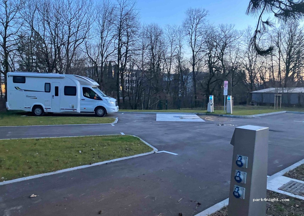 Sauberer Stellplatz mit Frischwasser- und Entsorgungsstation. 5 Stellplätze für 6m Camper,es sind normale Parkplätze. In der Nacht war es auch sehr ruhig und bis zur Altstadt ist es nicht weit. Mit easypark 26eur für eine Nacht bezahlt,was leider doch etwas teuer war.