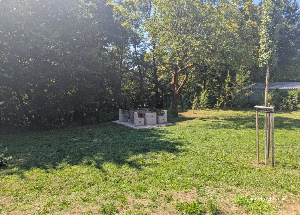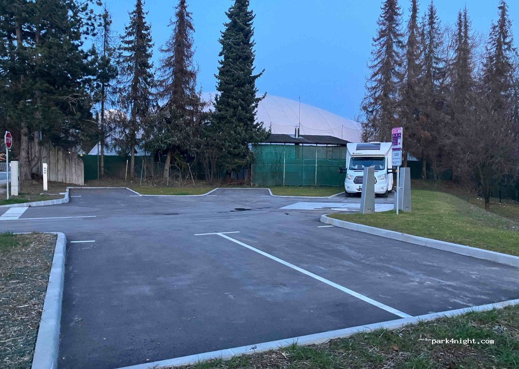 Super parking pour visiter la ville de Kranj. Calme la nuit avec tables pique nique. À recommander. Très propre