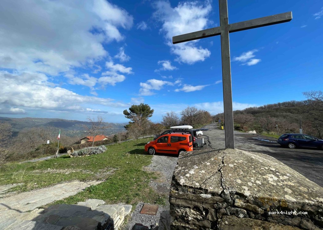 Parcheggio in prossimità di sentieri mtb o escursioni a piedi. C’è una piccola fontana con acqua buona. Il parcheggio ha la vista mare! Siamo stati a febbraio ed eravamo da soli ma ci stanno 10 macchine