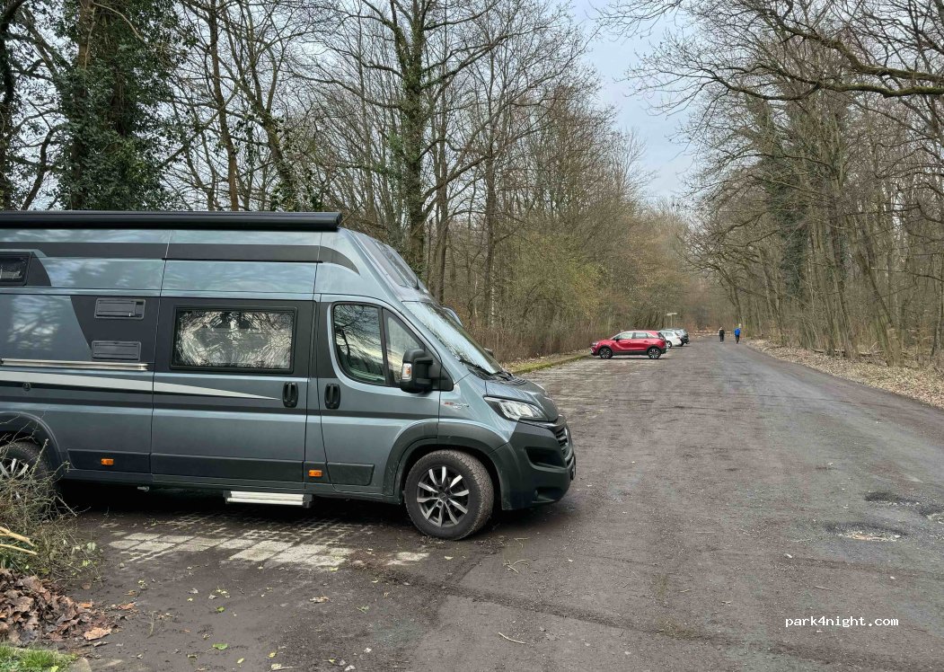 Parking en forêt à proximité du terrain de foot et de la salle de tennis, point de départ de sports et randonnées