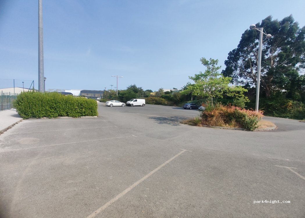 Parking right next to the stadium and aquatic area. we didn't spend the night there but it seems possible. playground, city stadium and skatepark ideal for a little break with the children