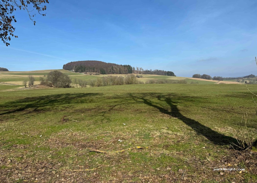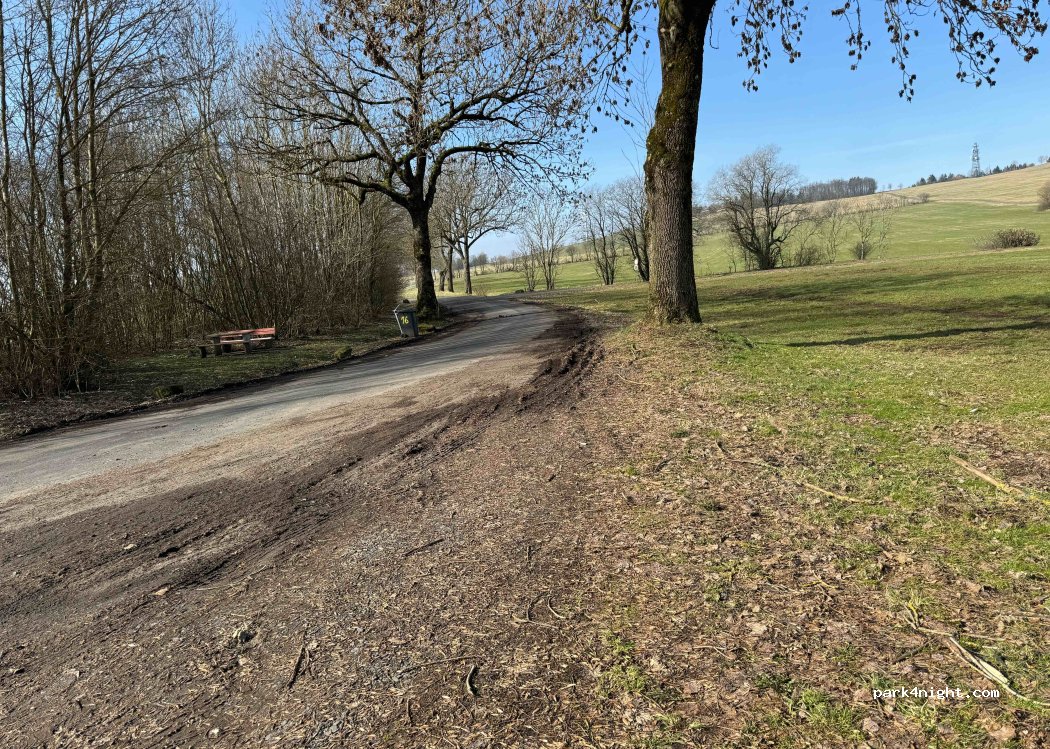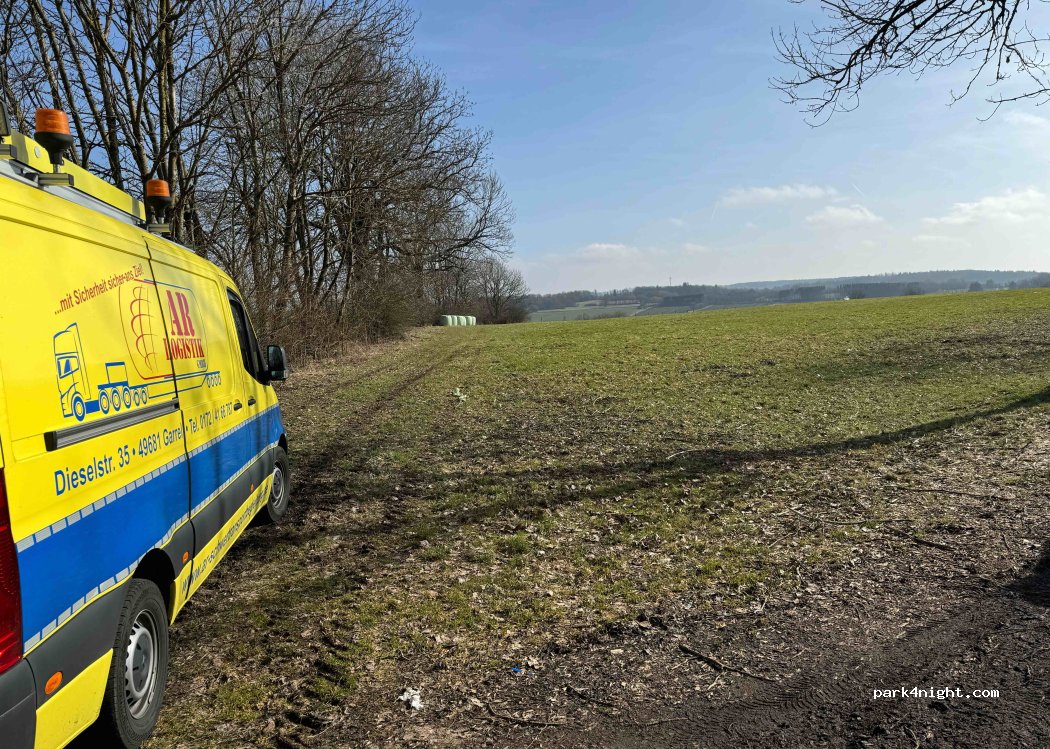 Ein kleiner Parkplatz an der Straße. Nicht viel Verkehr. Reicht für eine Nacht. Umgeben von Felder