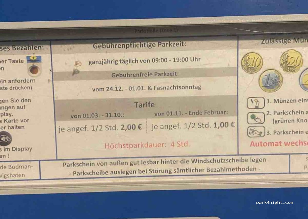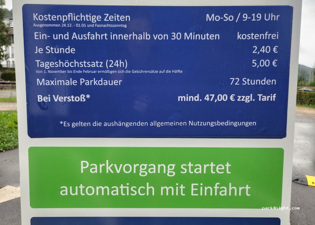 Die halbe Stunde kostet 2,- €. Ein Tagesticket gibt es dort nicht! Die Parklücken sind außerdem sehr klein und für PKW ausgelegt.