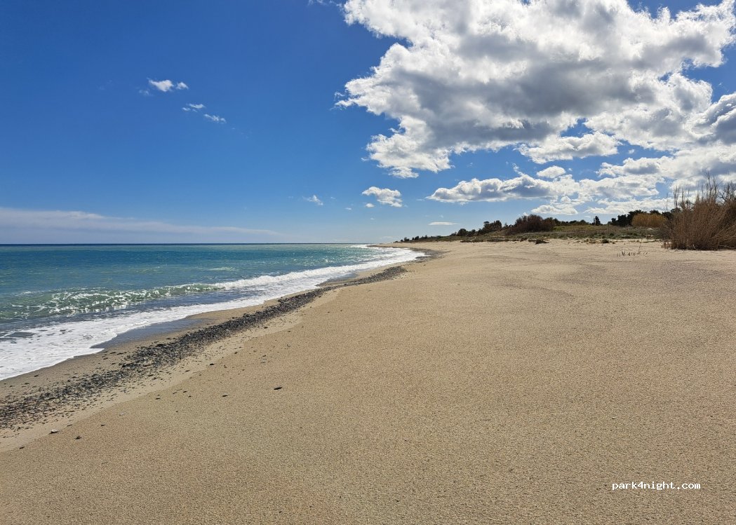 Pour les explorateurs et les conducteurs de 4x4 parmi nous, il y a plusieurs endroits merveilleusement beaux et absolument solitaires au bord de la mer à droite et à gauche du parking. Cependant, des compétences de conduite sont requises ici. Nous y avons passé quelques jours tranquilles et relaxants en mars, avec baignade et nudisme.