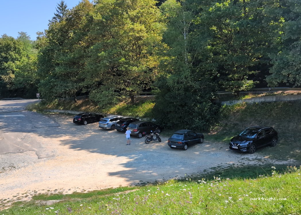 le parking est petit et un peu en pente, réservé au petit véhicules, mais il fait le travail pour qui veut se promener au bord du lac...pour les nuitées le parking plus au sud est plus adapté