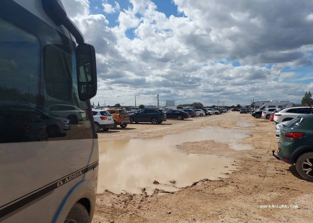 Es un aparcamiento de tierra, un poco embarrado cuando llueve. pero muy práctico y a tiro de piedra del gran mercado.