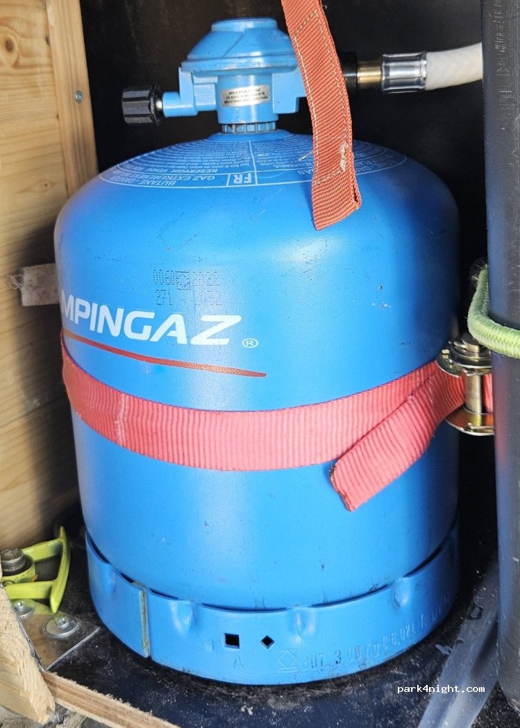 Mogelijkheid tot omwisselen van 907 camping gaz. Let wel: op dit moment enkel de ‘spaanse’ flessen (paars) beschikbaar. Wij kozen ervoor om niet om te wisselen en verder te zoeken naar een originele 907 fles.