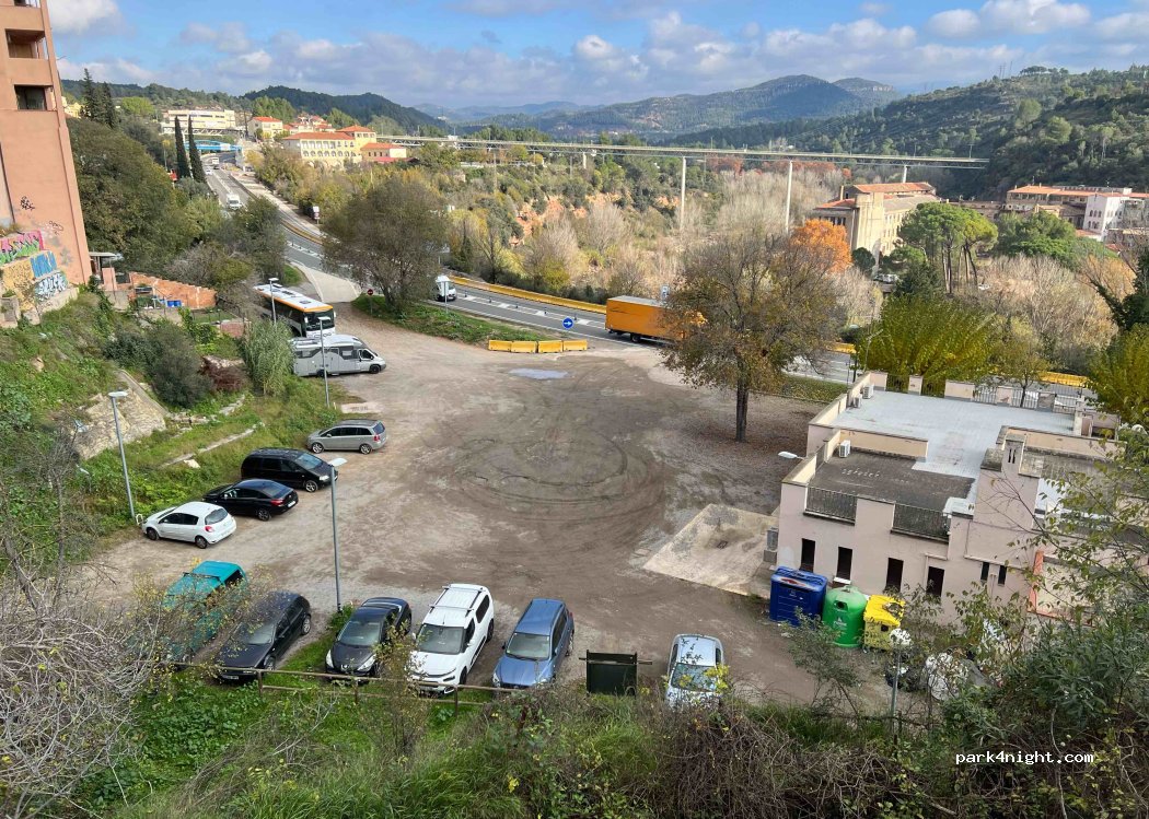 Aire de camping-cars gratuite au pied du Montserrat. Une dizaine de place disponible. A l’heure actuelle les services sont indisponibles sauf la vidange eaux grise (quoi que). Pas loin de la gare du train à crémaillère qui monte au monastère. Route bruyante à proximité. Ça a le mérite d’exister, merci quand même à la municipalité pour ce stationnement.
