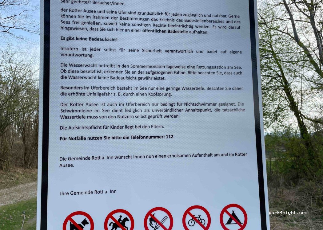 Parking lot at the lake. There is a small snack bar available. Garbage disposal too. Parking spaces are level and also suitable for larger motorhomes. The parking lot is currently free in March. In summer it costs something here. Dogs are not allowed during the swimming season from May to September. Otherwise yes