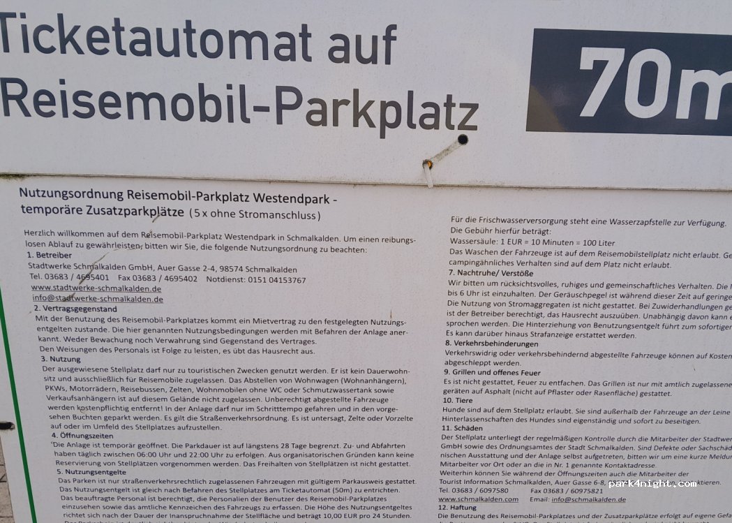 5 designated temporary additional parking spaces for mobile homes without electricity. The V/E of the mobile home parking space 70m away can be used for a fee.