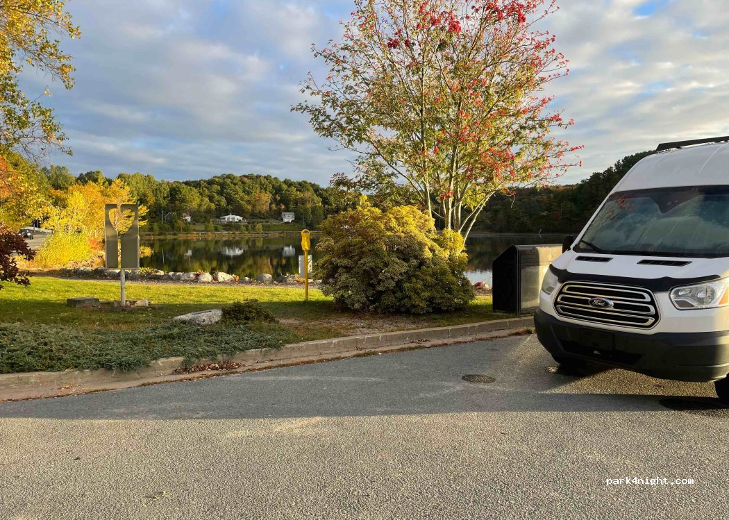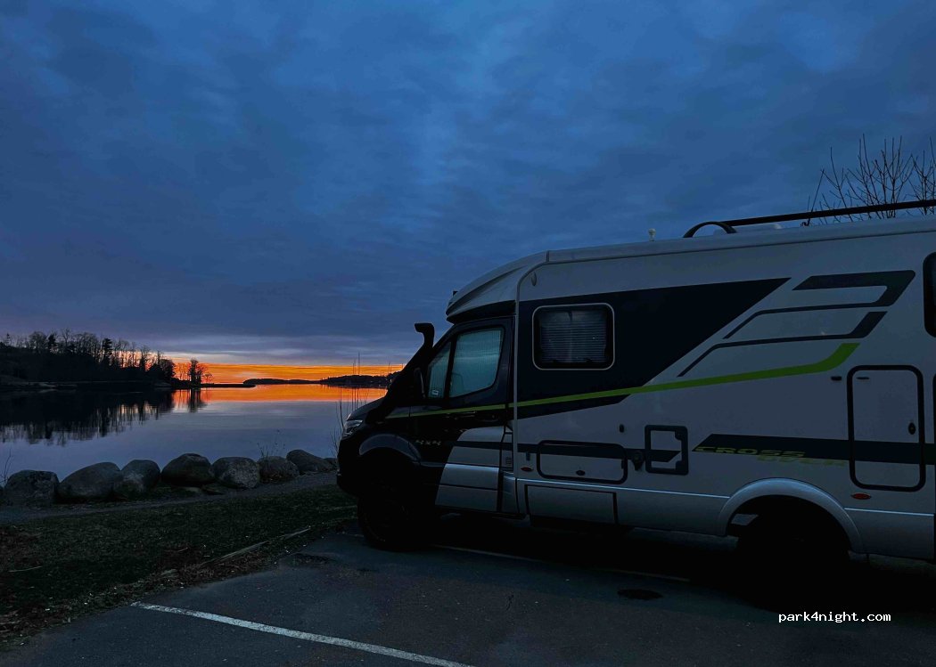 Both parking areas state no overnight parking. Good for day parking as easy walk into shopping and cafe areas but not overnight. Better to park further out of town in lake pull-ins for overnight