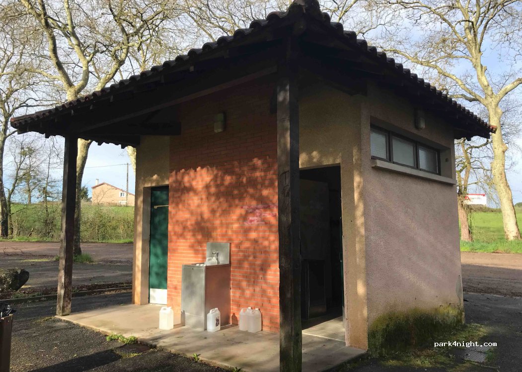 Toilettes publiques avec 3 robinets. Table de pique nique