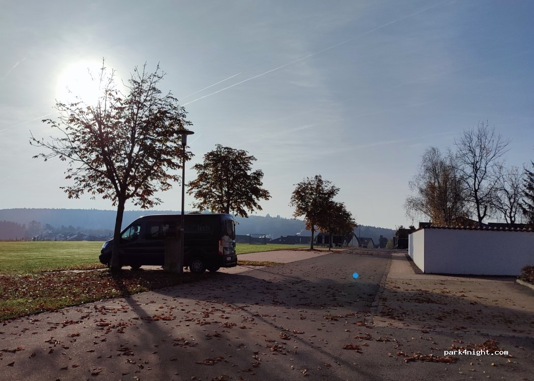 Wir verbrachten hier eine ruhige und sichere Nacht. Sehr freundliche Anwohner. Keinerlei Infrastruktur, nur für autarke kleine Wohnmobile. Länge max. 6.40m. Wald angrenzend. Vielen Dank an die Gemeinde.