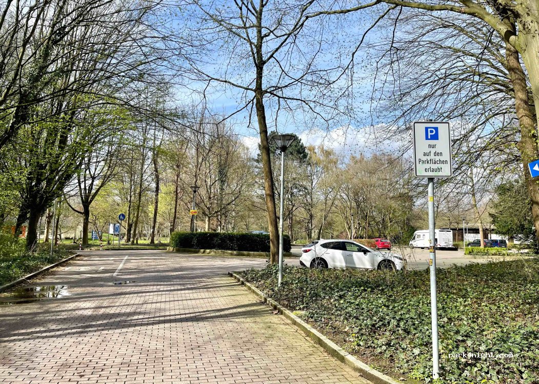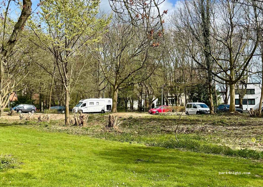 Simple parking near a spa park, parking lot is used by vocational students on weekdays, great parking at weekends and during the holiday season, beautiful green spaces in the immediate vicinity, very quiet at night, shops and beautiful town within easy walking distance, conveniently located near the A1 and A2