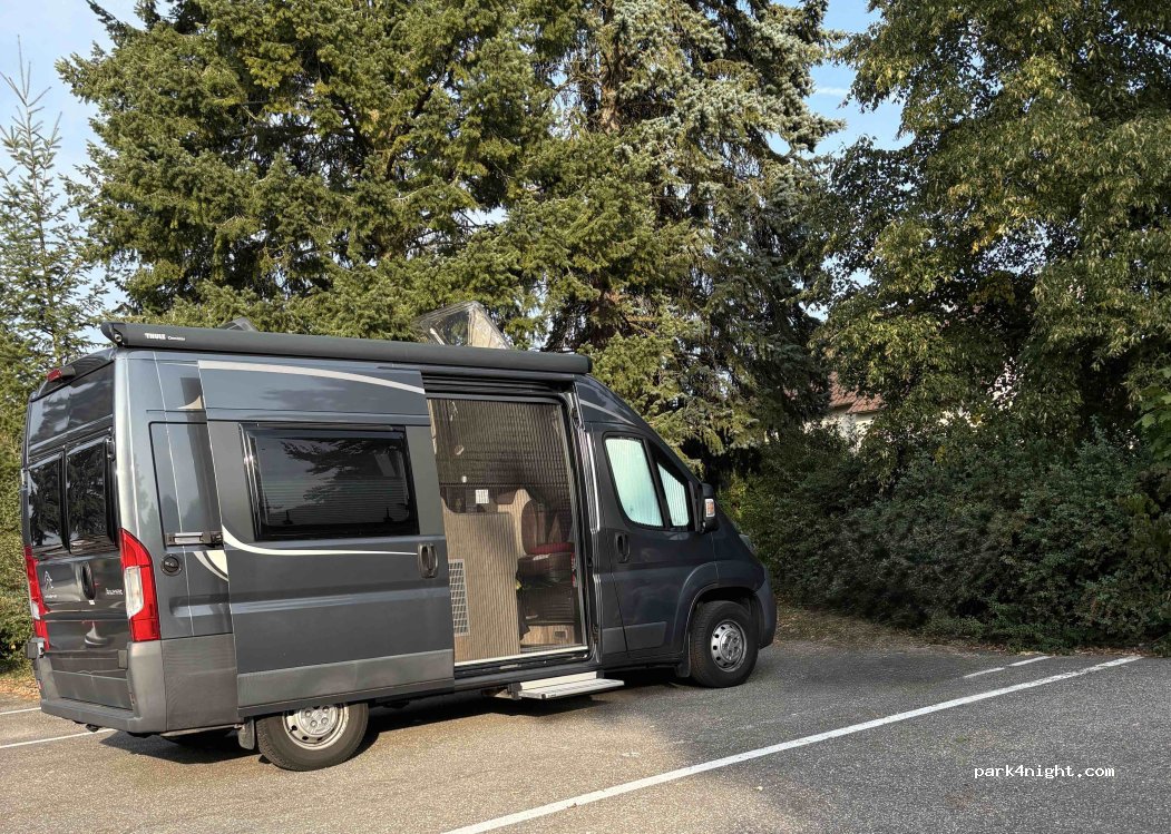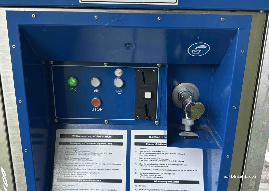 Laut Schild 3 Stellplätze angezeigt aber 4 Platze farblich markiert. Strom kostet 1 € pro 2 kWH, Frischwasser 10 Cent pro 10 l, für Grauwasser kein Bodenablauf vorhanden, müsste wenn möglich mit einem mindestens 3 m langen Schlauch oder per Eimer/Schüssel an der Sani-Station entsorgt werden genauso wie tragbare WC's für 1 €. Für ein Restaurant im Sportlerheim sehr umfangreiche Speisekarte.