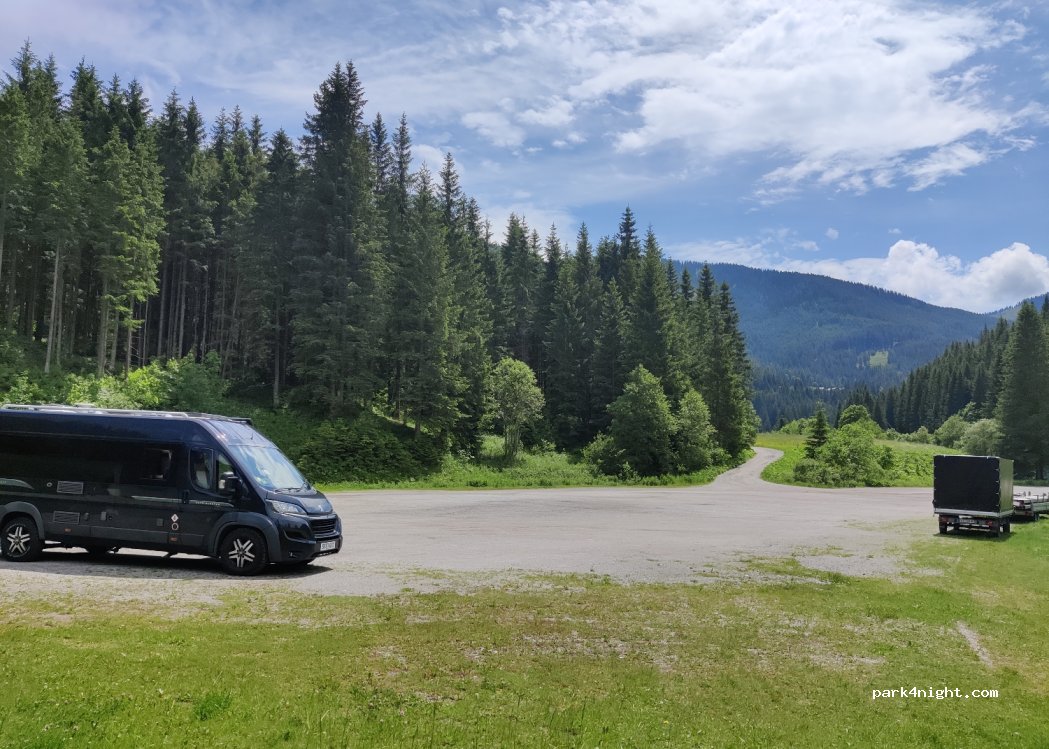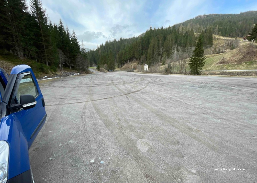 Huge parking lot at the lift. Was completely empty at the end of March. No prohibition signs. Nice and quiet, you can only hear the sound of the stream.