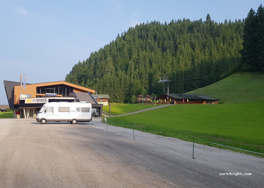 Riesiger Parkplatz am Lift. Ende März komplett leer. Keine Verbotsschilder. Schön ruhig, man hört nur das Rauschen des Baches.